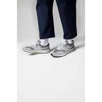 - Classic sneakers with textile uppers and suede overlays.