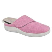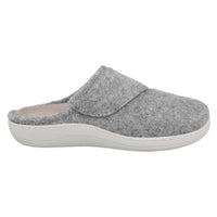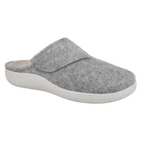 Cosy mule style in soft felt material, with a soft lining and adjustable strap for maximim security and adjustability.